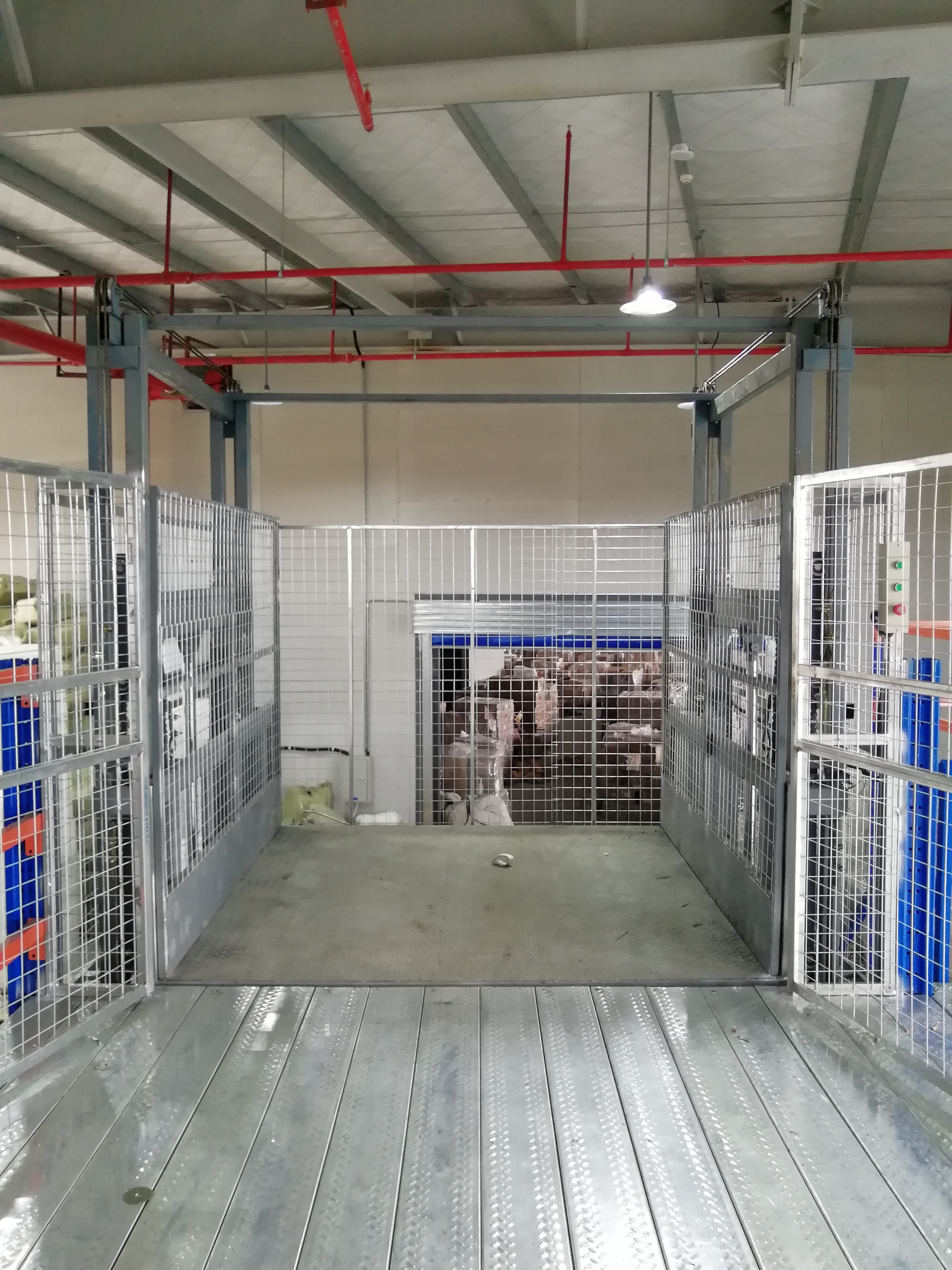 長沙縣東十路某工程機械公司鋼平臺與導軌式升降機完美結合使用